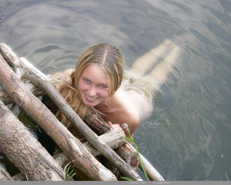 Skinny teen Tina goes nude in a bathtub while taking a bubble bath