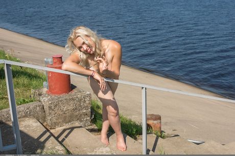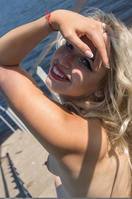 Slender teen Charlotte A poses nude in the sunshine with her hair in a braid