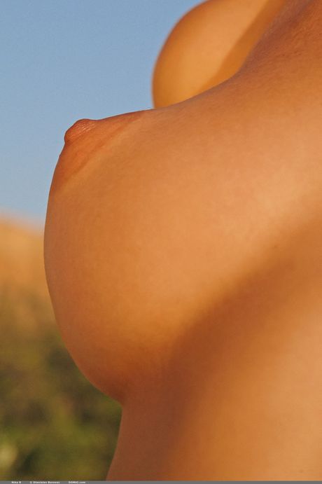 Svelte teen Nika R models totally naked on a rocky outcropping