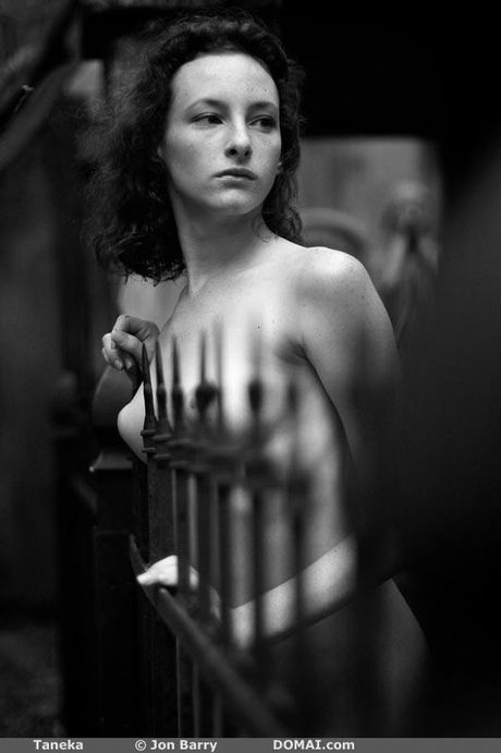Tall redhead Taneka poses naked in the garden to show her tiny tits & ass