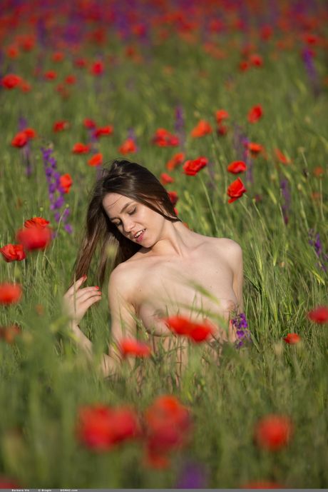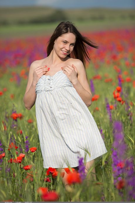 Thin teen Barbara Vie shows her small tits and twat