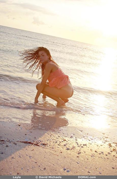 Thin teen Layla gets wet while posing nude in a shallow stream