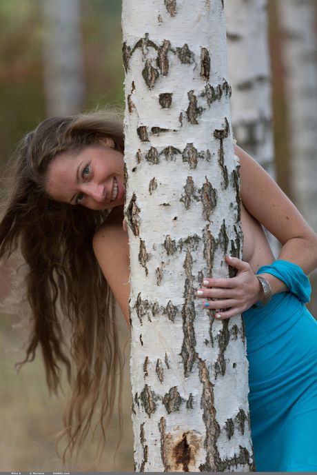 Ukrainian fair Mika A goes naked in the shade of the trees