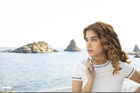 Winsome teen Marina Gold removes her bikini and lingerie to pose nude on a balcony