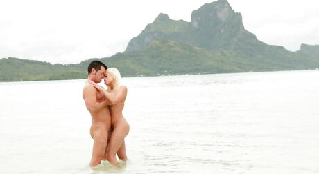 Enchanting american blonde milf Jesse Jane fucked after hot blowjob at beach