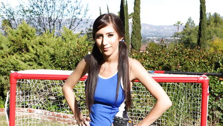 Enchanting cuban babe Daisy Cruz in skirt denudes big titties and spreads her legs outdoor