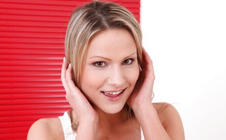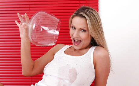 Enchanting czech hottie Samantha Jolie in fancy shorts showing big boobs and vagina