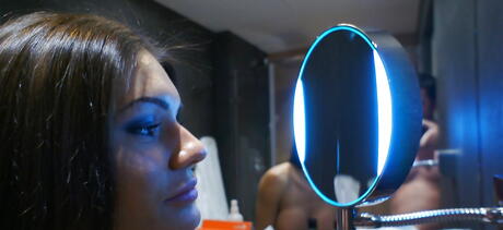 Enchanting russian hottie Kitana Lure bares big titties and butt in the bathroom