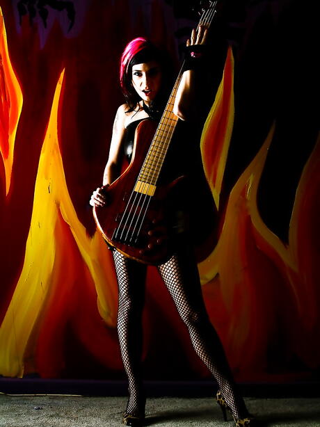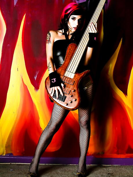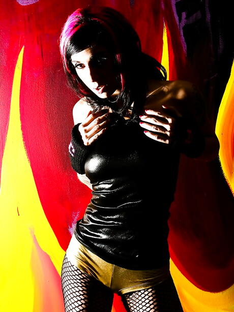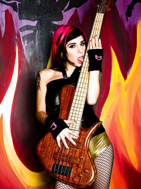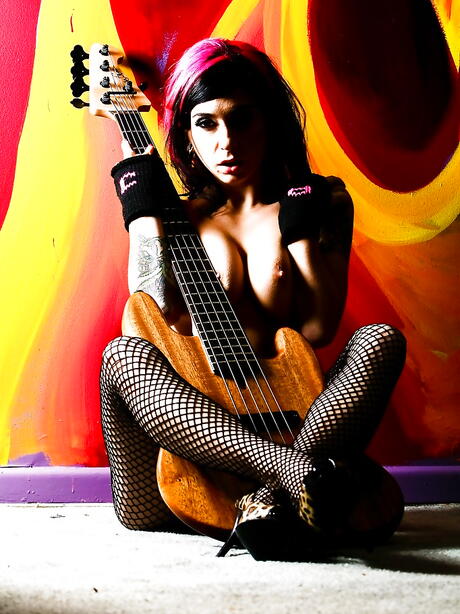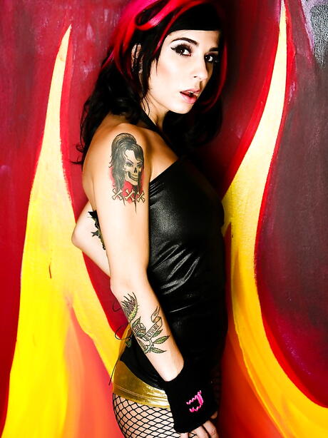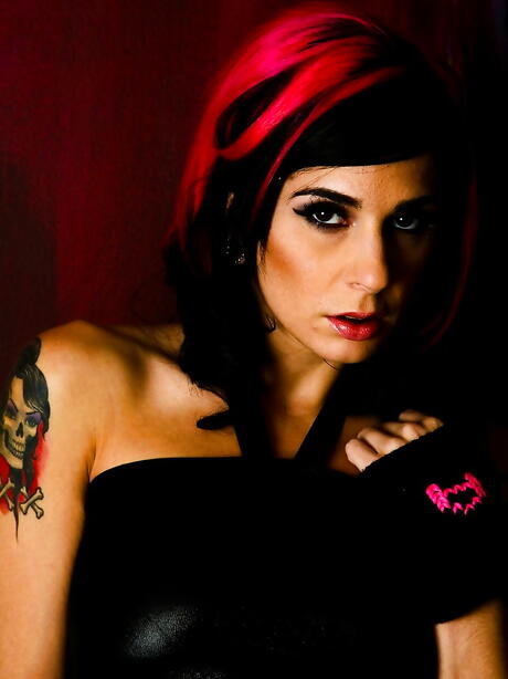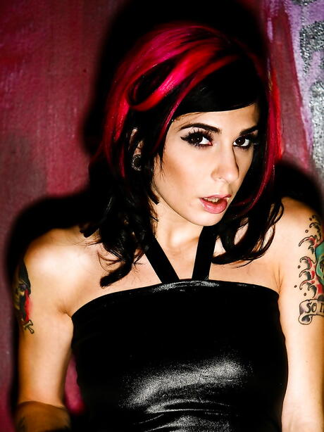 Enticing american milf Joanna Angel exposes big tits and hairy beaver