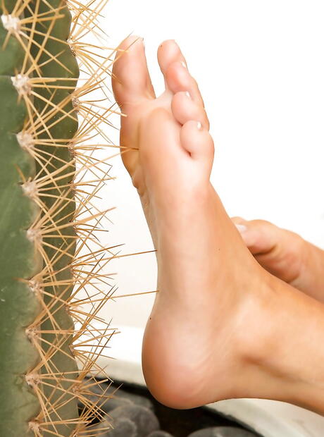 Enticing british blond Cara Brett in lingerie show some foot fetish