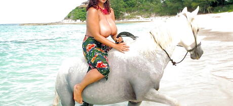 Enticing german milf Chloe Vevrier in skirt exhibiting big boobs and spreading her legs at beach