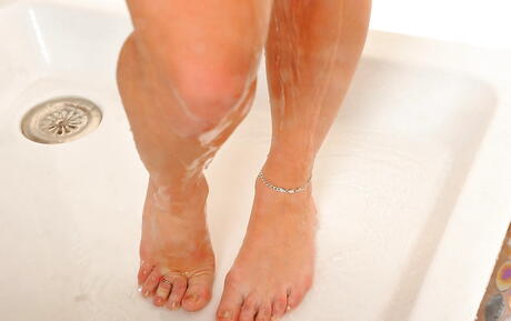 Enticing hungarian babe Kitty Cat likes some hot foot fetish in shower
