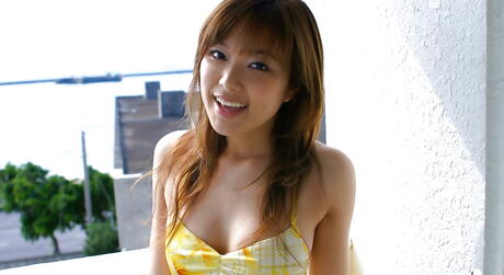 Enticing japanese babe Yua Aida denudes big boobs and butt outdoor