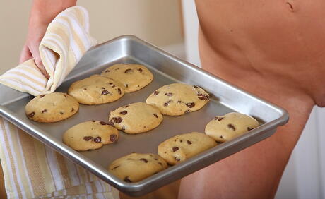 Enticing latina milf Caroline in sexy undies baring big boobs and hot butt in the kitchen