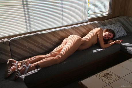 18-year-old girl Cindy Shine takes off everything on a bed in her bedroom