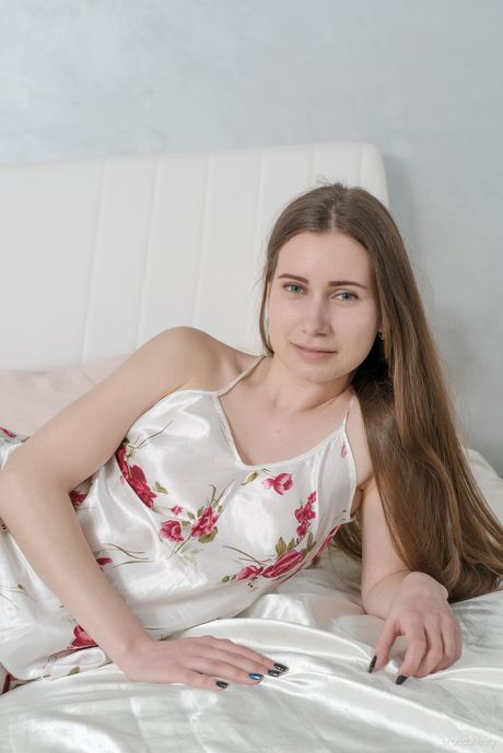 Bashful teen Lady Di removes satin lingerie to pose nude without embarrassment