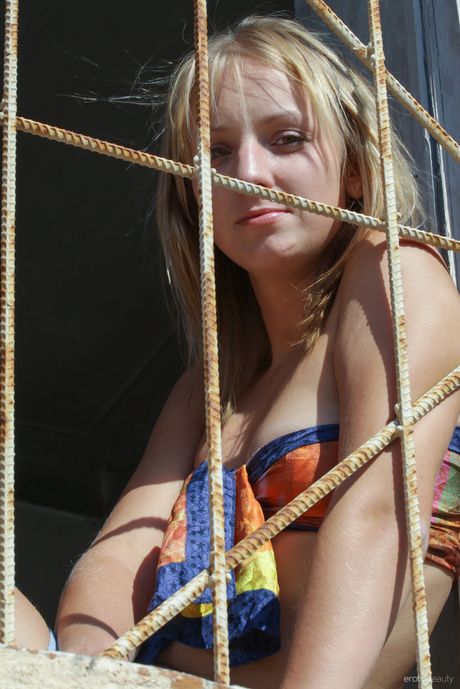 Blonde teen Ilona D gets naked in a ruined building while on vacation