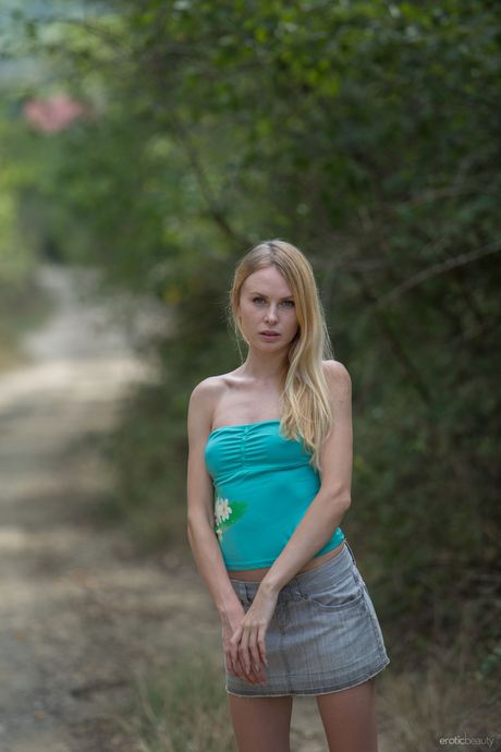 Blonde teen Maria Rubio gets naked on a dirt road in a pair of sandals