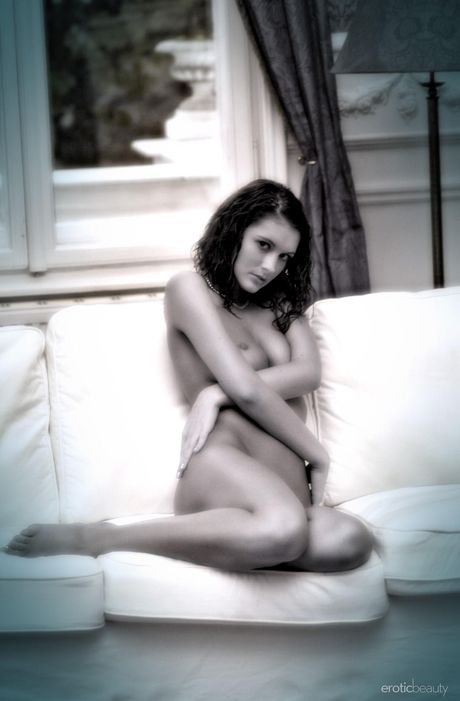 Brunette babe Oshi stripping off her swimsuit and posing nude on the beach