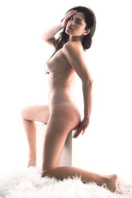 Delightful teen Luco shows off her big tits and hairy pussy in the nude