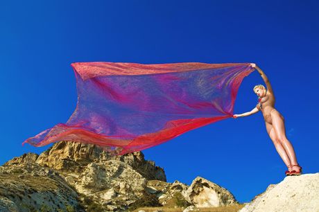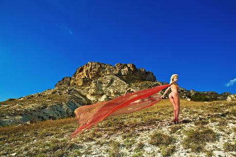 Engaging teen Marticia A poses naked in the forest and on the beach