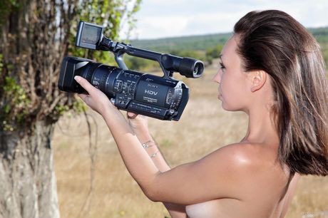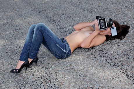 Glamour model Angeline A gets naked in a pair of heels on a rural road