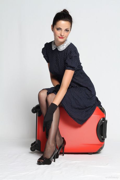 Gorgeous teen Lu Lu removes black gloves and stockings to pose nude in heels