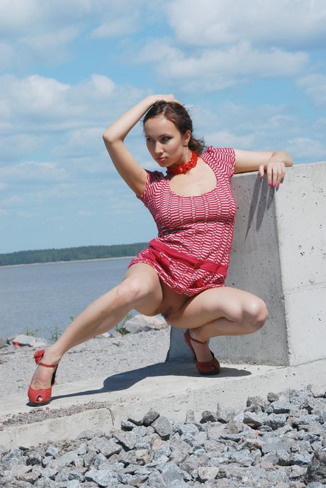 Intriguing teen Kate D poses nude & exhibits her big tits & her delicious pussy