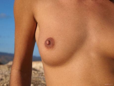Latina teen Anna AM goes nude on a concrete slab in a public place
