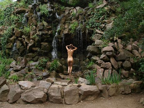 Lean teen Hanka A strips naked in a shallow pool & poses in the water