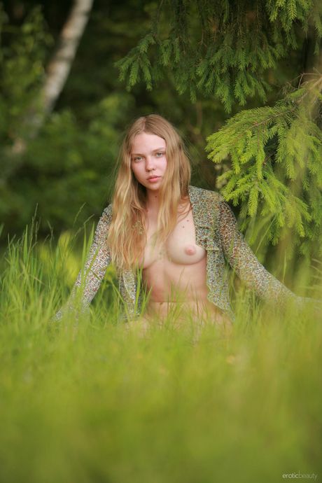 Lean teen Polly A shows her small tits and hairy pussy in a solo