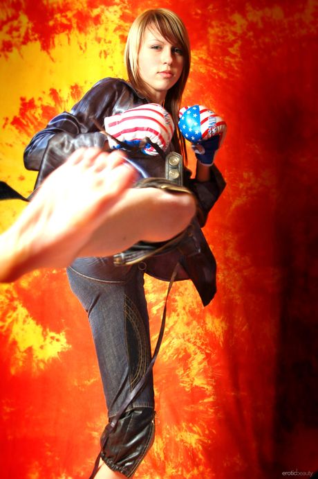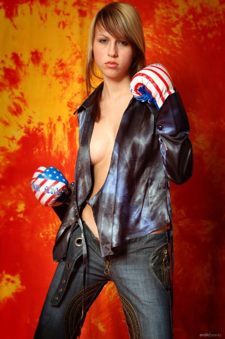 Lean teen Selina with tiny tits and bald pussy posing naked in the studio