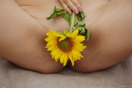 Naked teen Kira T strikes great solo poses in a field of wildflowers