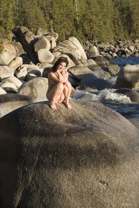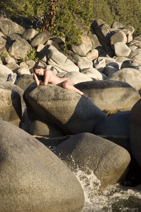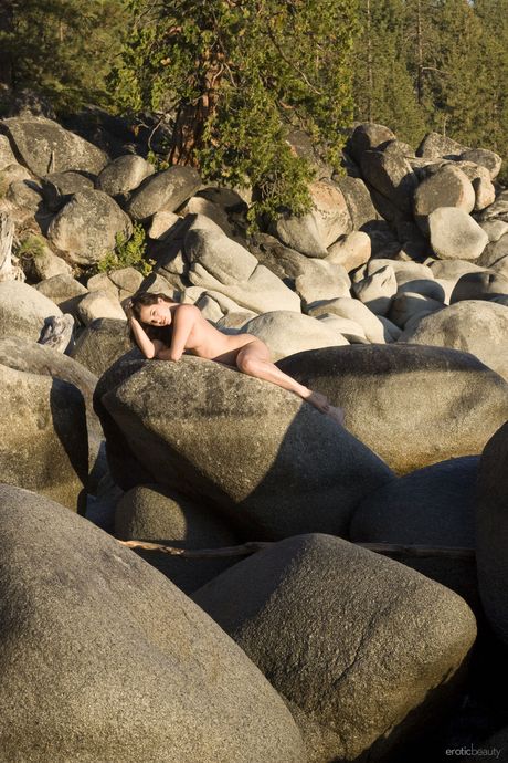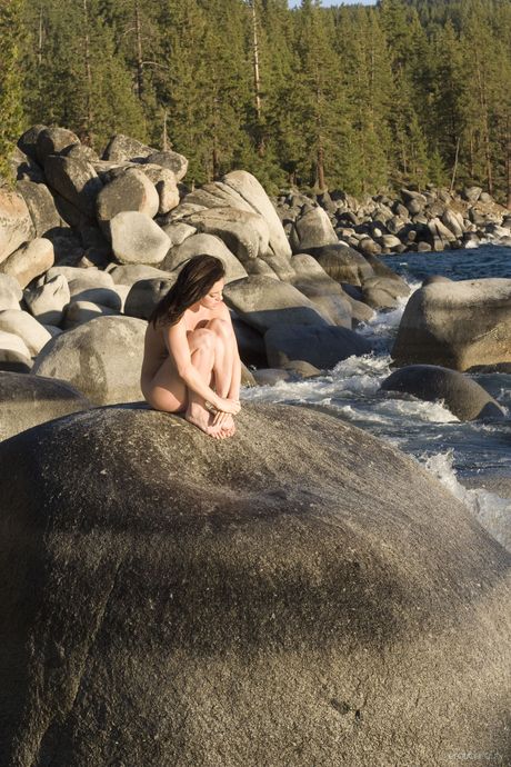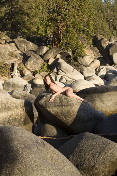 Naked teen Oleen strikes great solo poses on a patio in the nude