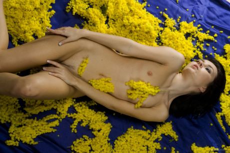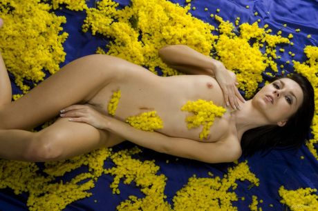 Nicollet demonstrates her beautiful body as she poses nude on the floor