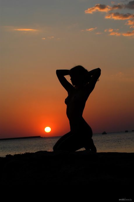Petite teen Marina M gets naked on a sandy beach at sunset