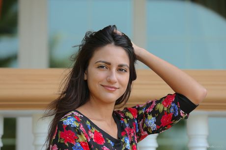 Pretty teen Cira Nerri spreading her legs & pussy on the floor in the backyard