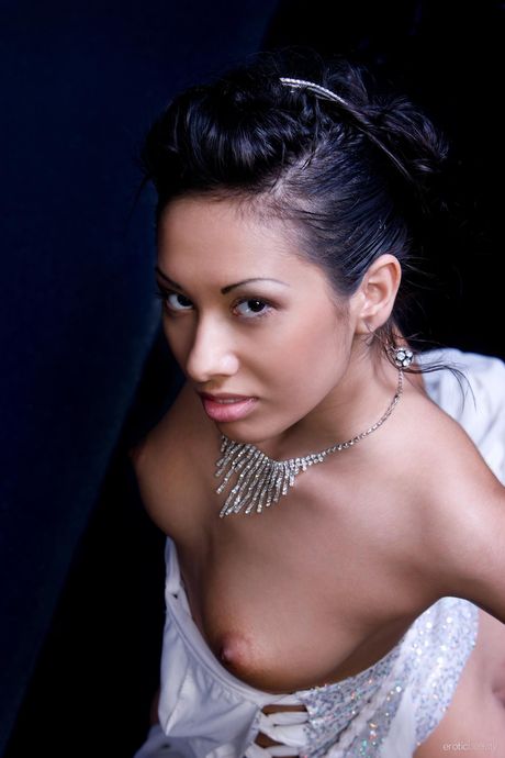 Pure teen Tasha B removes a long dress to pose nude with certainty