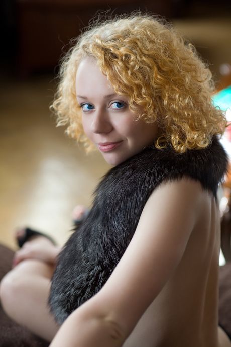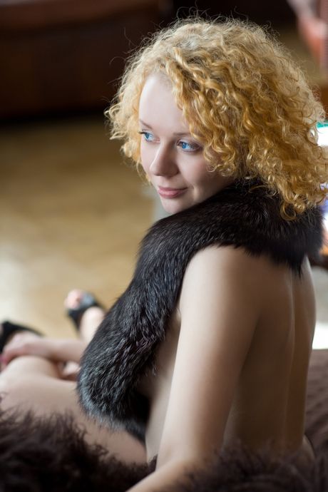 Redheaded teen Anfisa B shows her bald pussy while posing naked