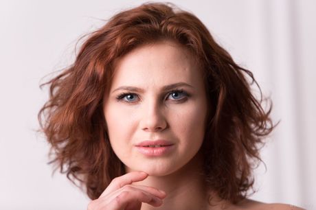 Redheaded teen Aphrodita fondles her totally naked body in solo action