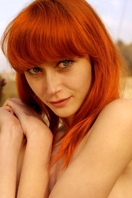 Redheaded teen Verika A doffs her lingerie and poses nude in a solo