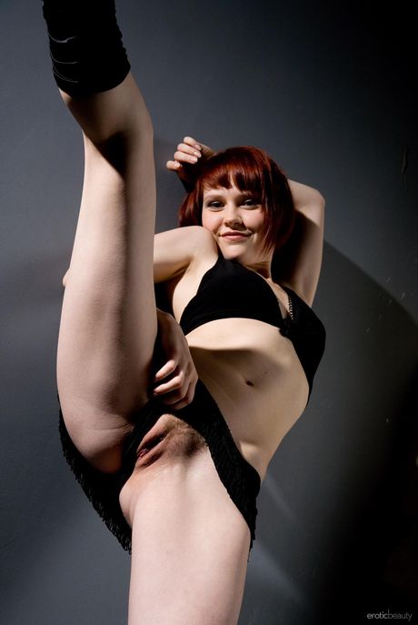 Russian redhead Anelie A shows her tiny tits and hairy pussy in boots
