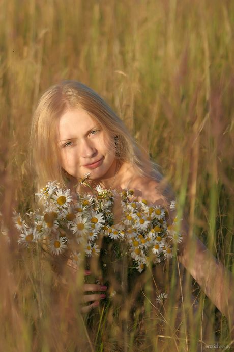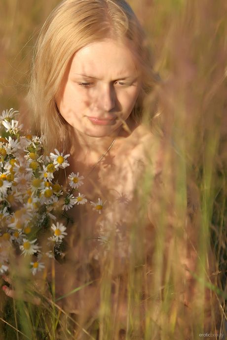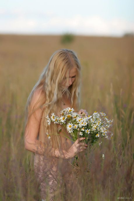 Sexy blonde Gerda A strips naked in the garden and poses in the sun