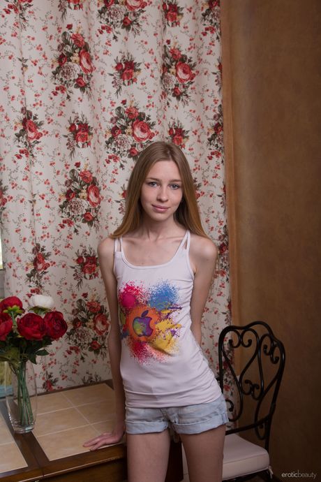Skinny 18-year-old Rina E takes it all off on a chair by herself