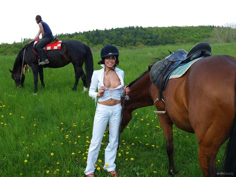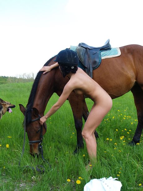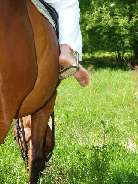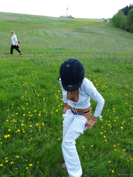 Skinny blonde teen Joan White strips and poses naked in a solo