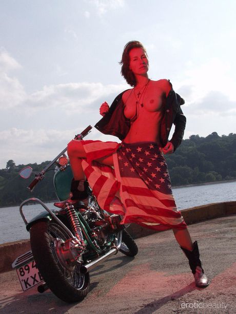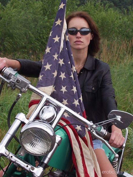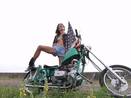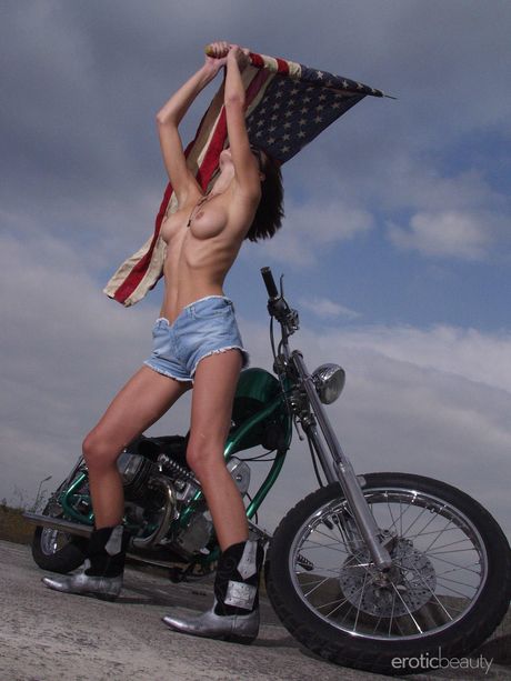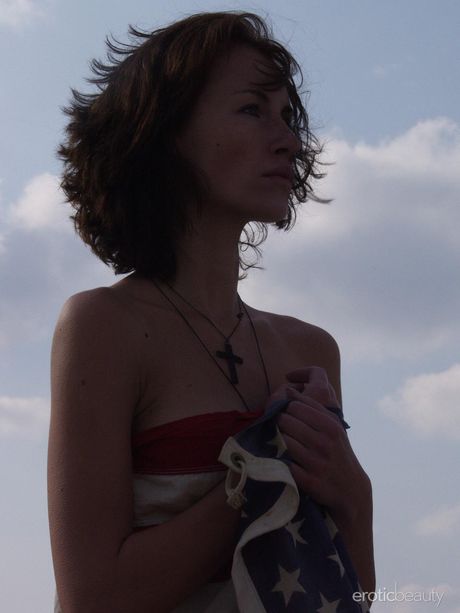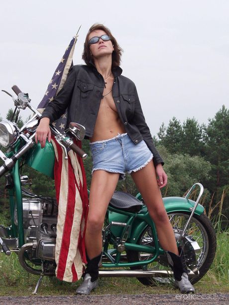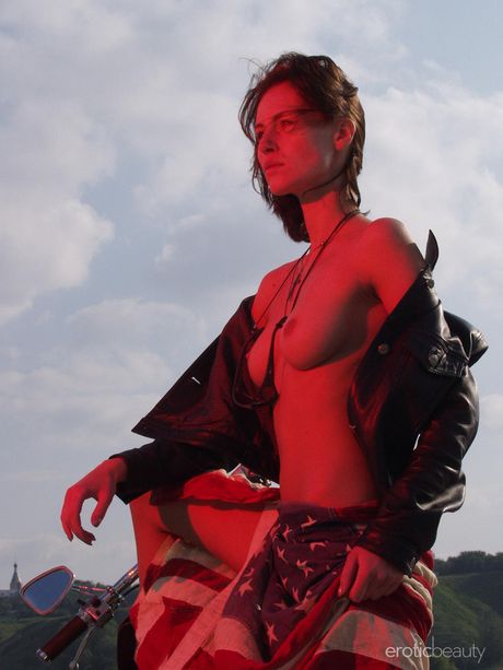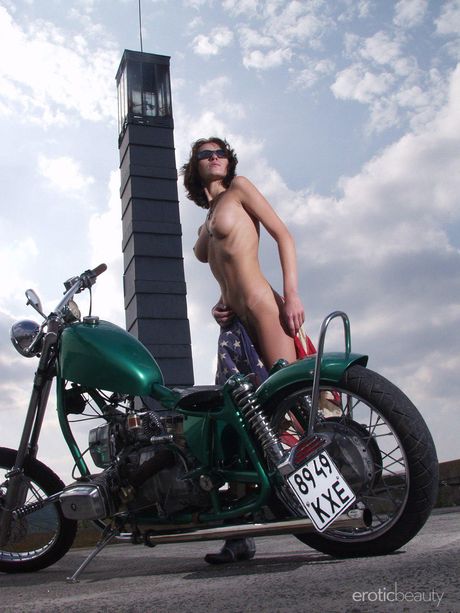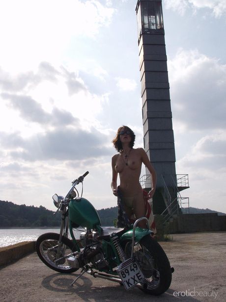 Skinny brunette Mara strips outdoors & oils her hot body in the sun
