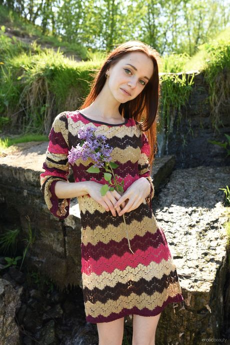 Skinny girlfriend Pala strips and spreads legs outdoors