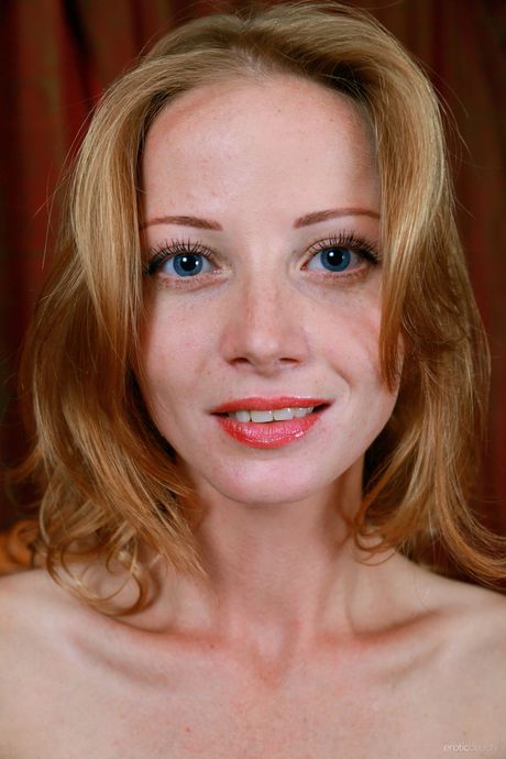 Skinny redhead Diana Bronce spreads her long legs wide open to show her pink