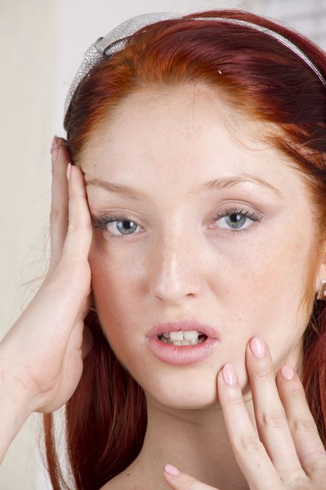 Skinny redhead Michelle H shows her tiny tits and ass in the nude