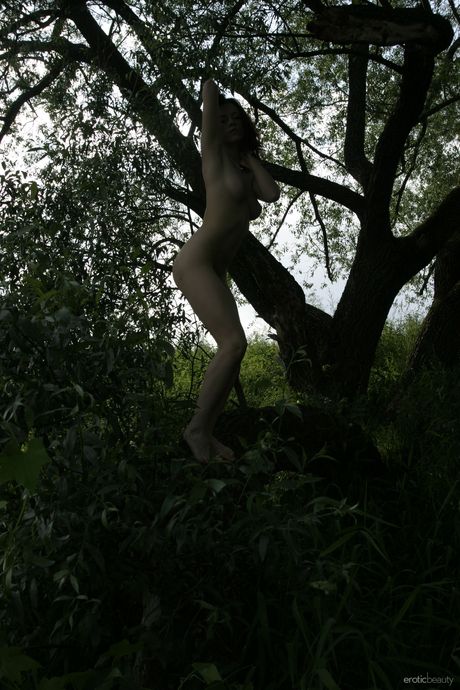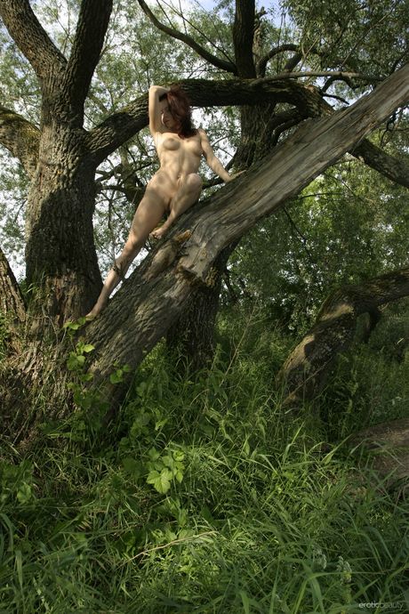 Skinny Russian peach Aleksa B poses nude in the forest & shows her hot body